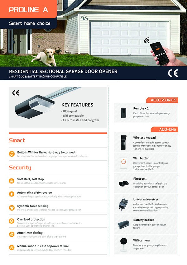 亨捷车库门电机具有遇阻反弹、软起软停、wifi等多种功能。